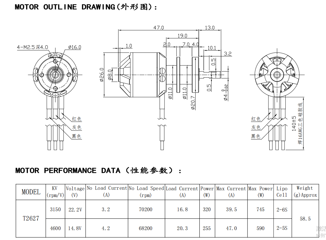 T2627-3000KV无刷电机,防水静音
